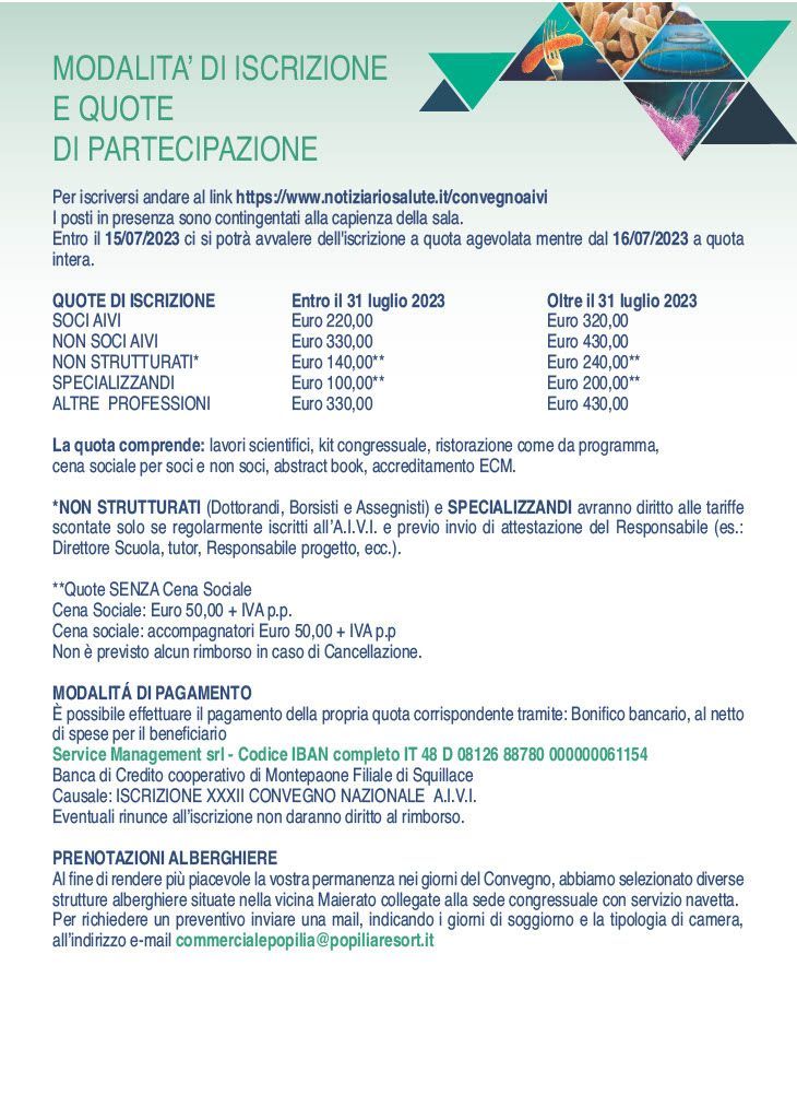 Causale: ISCRIZIONE XXXII CONVEGNO NAZIONALE A.I.V.I.