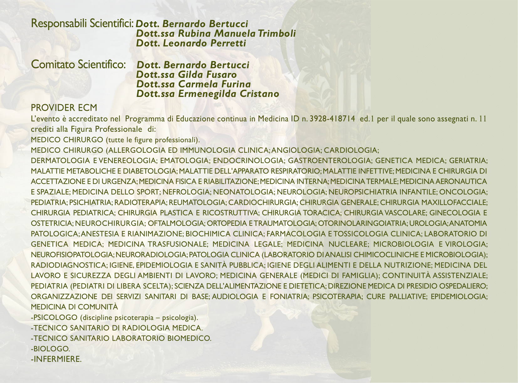 L’evento è accreditato nel Programma di Educazione continua in Medicina ID n. 3928-418714 ed.1 per il quale sono assegnati n. 11 crediti.