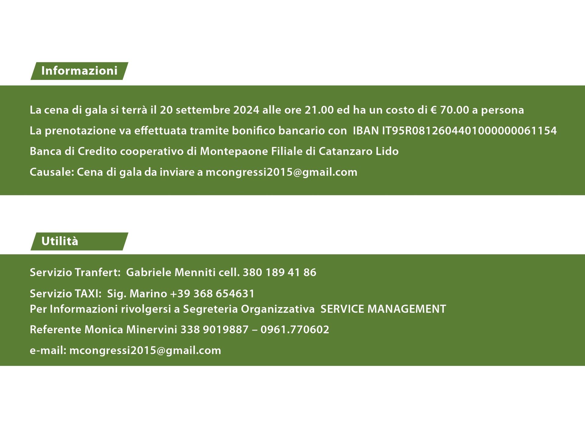 Unitamente alla scheda d’iscrizione inviare copia del bonifico per e-mail a: mcongressi2015@gmail.com